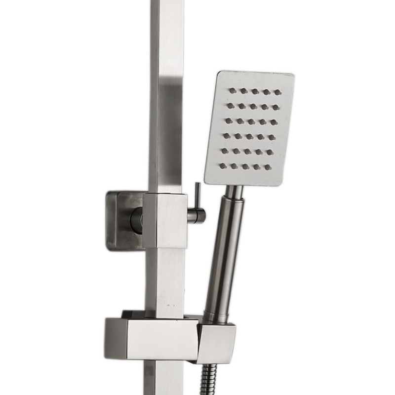 Душевая стойка HB815 востребованного бренда Haiba производства Китая великолепно дополнит пространство ванной комнаты и даст возможность легко проделывать все гигиенические манипуляции. Ее высота составляет 131 см, длина шланга 150 см, а размер лейки см. Из-за добротного материала изготовления - нержавеющей стали, поверхность системы устойчива к появлению ржавчины, отложений и царапин, и к тому же не требует значительных усилий при уходе. Интересный и изысканный дизайн модели и цвет - сталь, сделают ее гармоничным акцентом в обустройстве душевой. Стойка выполнена согласно всем нормам европейского производства и располагает полной гарантией - 5 лет. Артикул модели HB24815. Верхний душ с легкостью регулируется, что позволяет настроить удобный угол наклона при эксплуатации.