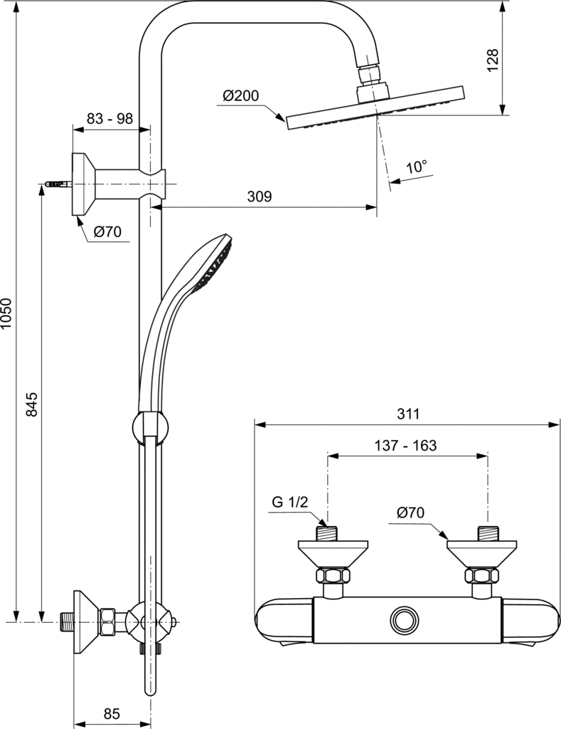 Душевая стойка IdealRain Eco признанного производителя Ideal Standard производства Германии чудесно впишется в обстановку ванного помещения и даст возможность с удобством проделывать все гигиенические манипуляции. Ее высота составляет см, длина шланга см, а размер лейки см. Из-за качественного материала изготовления - латуни, поверхность системы обладает устойчивостью к возникновению известковых отложений и механических повреждений, и к тому же не требует особых усилий для поддержания чистоты. Интересный и лаконичный дизайн модели и цвет - хром, сделают ее отличным акцентом в убранстве душевой. Стойка произведена согласно всем нормам европейского производства и обладает полной гарантией - 5 лет. Артикул модели A6421AA. Верхний душ достаточно просто регулируется, что позволяет подобрать самый оптимальный угол наклона при эксплуатации.