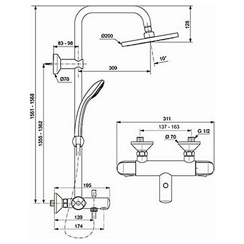Душевая стойка IdealRain Eco признанного производителя Ideal Standard производства Германии чудесно впишется в интерьер ванной комнаты и даст возможность с удобством проделывать все водные манипуляции. Ее высота составляет 156.8 см, длина шланга см, а размер лейки см. Благодаря высокопрочному материалу изготовления - латуни, поверхность системы очень стойкая к возникновению известковых отложений и царапин, и к тому же не требует дополнительных усилий при очистке. Незаурядный и лаконичный дизайн модели и цвет - хром, сделают ее правильным акцентом в обустройстве душевой. Стойка произведена соответственно всем нормам европейского производства и располагает гарантийным сроком - 5 лет. Артикул модели A6426AA. Верхний душ достаточно просто регулируется, что позволяет подобрать оптимальный угол наклона при использовании.