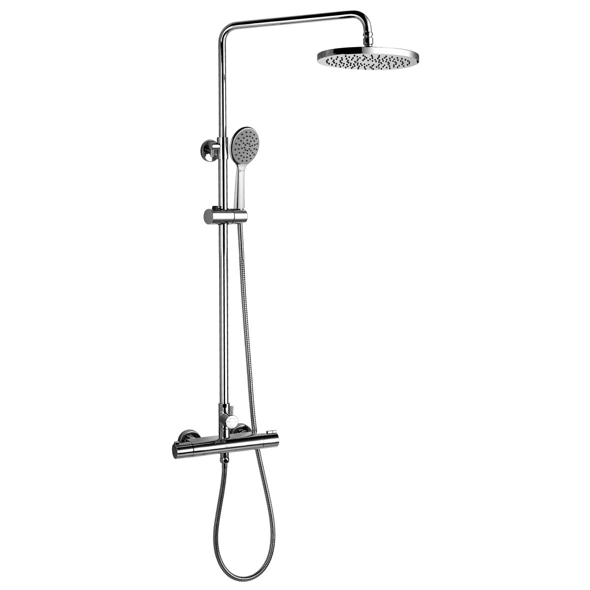 Душевая стойка Yeti востребованного производителя Lemark производства Чехии великолепно впишется в обстановку ванной комнаты и предоставит возможность с комфортом проводить все гигиенические процедуры. Ее высота составляет 127 см, длина шланга 150 см, а размер лейки 10.6 см. Благодаря качественному материалу изготовления - латуни, поверхность системы обладает устойчивостью к образованию налета, отложений и механических повреждений, и в довесок не требует особых усилий при очистке. Интересный и лаконичный внешний вид модели и цвет - хром, сделают ее завершающим акцентом в убранстве душевой. Стойка сделана соответственно всем нормам европейских стандартов и обладает гарантийным сроком - 4 года. Артикул модели LM7860C. Верхний душ легко регулируется, что позволяет настроить оптимальный угол наклона при эксплуатации.
