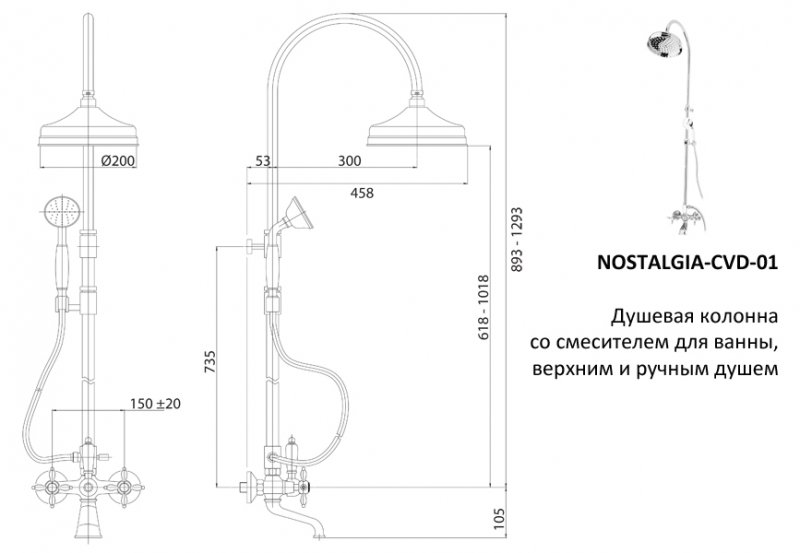 Душевая стойка Nostalgia популярного бренда Cezares производства Италии отменно впишется в пространство ванного помещения и позволит комфортно проводить все гигиенические процедуры. Ее высота составляет 129.3 см, длина шланга 150 см, а размер лейки см. Из-за добротного материала исполнения - латуни, поверхность системы очень стойкая к появлению налета, отложений и механических повреждений, а также не требует особых усилий при очистке. Привлекательный и лаконичный внешний вид модели и цвет - хром, сделают ее правильным акцентом в обустройстве душевой. Стойка выполнена соответственно всем нормам европейских стандартов и обладает гарантийным сроком - 5 лет. Артикул модели NOSTALGIA-CVD-01-M. Верхний душ достаточно просто регулируется, что позволяет подобрать оптимальный угол наклона при эксплуатации.