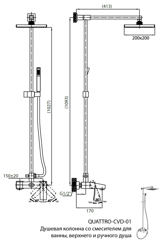 Душевая стойка Quattro известного производителя Cezares производства Италии превосходно впишется в пространство ванной комнаты и предоставит возможность комфортно выполнить все водные процедуры. Ее высота составляет 109.3 см, длина шланга 150 см, а размер лейки см. Благодаря качественному материалу изготовления - латуни, поверхность системы обладает устойчивостью к возникновению ржавчины, отложений и механических повреждений, и в довесок не требует особых усилий для поддержания чистоты. Привлекательный и изысканный дизайн модели и цвет - хром, сделают ее правильным акцентом в обустройстве душевой. Стойка выполнена согласно всем нормам европейских стандартов и располагает полной гарантией - 5 лет. Артикул модели QUATTRO-C-CVD-01-S. Верхний душ легко регулируется, что позволяет откорректировать оптимальный угол наклона при использовании.