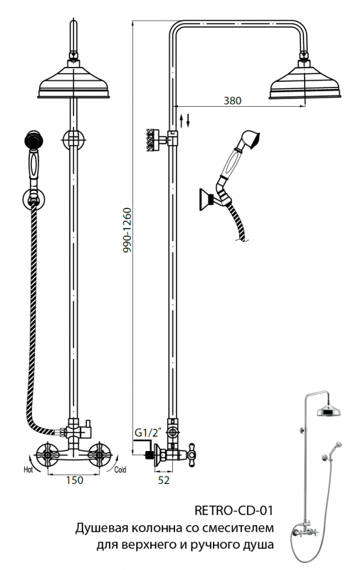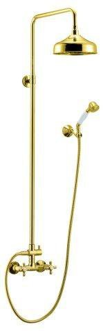 Душевая стойка Retro признанного производителя Cezares производства Италии превосходно впишется в пространство ванной комнаты и даст возможность комфортно выполнить все водные процедуры. Ее высота составляет 126 см, длина шланга 150 см, а размер лейки см. Из-за добротного материала изготовления - латуни, поверхность системы обладает устойчивостью к образованию известковых отложений и сколов, а также не требует дополнительных усилий при очистке. Красивый и лаконичный дизайн модели и цвет - золото, сделают ее завершающим акцентом в убранстве душевой. Стойка сделана соответственно всем нормам европейских стандартов и обладает гарантийным сроком - 5 лет. Артикул модели RETRO-CD-03. Верхний душ легко регулируется, что позволяет настроить оптимальный угол наклона при эксплуатации.
