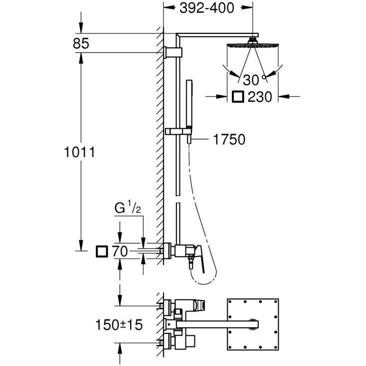 Душевая стойка Euphoria Cube пользующегося популярностью бренда Grohe производства Германии чудесно впишется в пространство ванной комнаты и позволит комфортно осуществлять все гигиенические процедуры. Ее высота составляет 1019.6 см, длина шланга 175 см, а размер лейки см. Из-за добротного материала изготовления - латуни, поверхность системы обладает устойчивостью к появлению известковых отложений и сколов, и к тому же не требует особых усилий для поддержания чистоты. Красивый и изысканный дизайн модели и цвет - хром, сделают ее завершающим акцентом в планировании душевой. Стойка сделана соответственно всем нормам европейских стандартов и обладает гарантийным сроком - 5 лет. Артикул модели 23147001. Верхний душ достаточно просто регулируется, что позволяет настроить оптимальный угол наклона при эксплуатации.