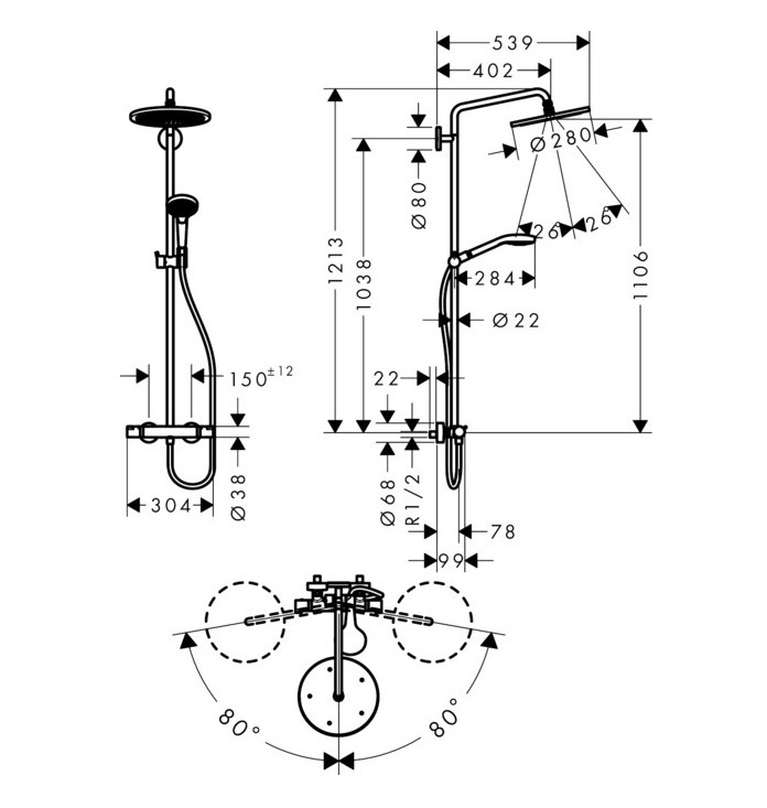 Душевая стойка Croma Select S популярного производителя Hansgrohe производства Германии великолепно дополнит интерьер ванного помещения и позволит с удобством проводить все гигиенические манипуляции. Ее высота составляет 121.3 см, длина шланга 160 см, а размер лейки см. Благодаря высокопрочному материалу изготовления - латуни, поверхность системы обладает устойчивостью к образованию ржавчины, отложений и царапин, и к тому же не требует дополнительных усилий для поддержания чистоты. Привлекательный и неброский дизайн модели и цвет - хром, сделают ее правильным акцентом в обустройстве душевой. Стойка выполнена согласно всем нормам европейского производства и располагает гарантийным сроком - 5 лет. Артикул модели 26794000. Верхний душ достаточно просто регулируется, что позволяет настроить удобный угол наклона при использовании.