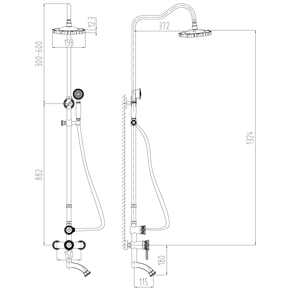 Душевая стойка Jasmine популярного производителя Lemark производства Чехии великолепно дополнит пространство санузла и предоставит возможность комфортно выполнить все гигиенические манипуляции. Ее высота составляет 148.2 см, длина шланга 150 см, а размер лейки см. Из-за качественного материала изготовления - латуни, поверхность системы очень стойкая к образованию известковых отложений и механических повреждений, и в довесок не требует значительных усилий при уходе. Незаурядный и неброский дизайн модели и цвет - бронза, сделают ее отличным акцентом в планировании душевой. Стойка выполнена в соответствии со всеми номами европейского производства и располагает гарантией - 4 года. Артикул модели LM6662B. Верхний душ с легкостью регулируется, что позволяет настроить оптимальный угол наклона при использовании.