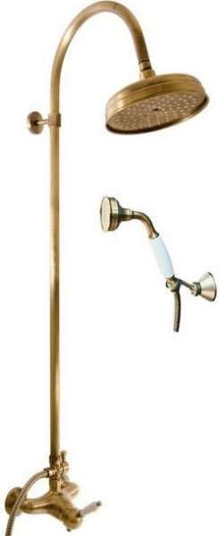 Душевая стойка Labe популярного бренда Rav Slezak производства Чехии превосходно дополнит пространство ванного помещения и даст возможность с комфортом проводить все гигиенические манипуляции. Ее высота составляет 110 см, длина шланга 150 см, а размер лейки см. Благодаря качественному материалу исполнения - латуни, керамики, поверхность системы обладает устойчивостью к возникновению ржавчины, отложений и сколов, а также не требует значительных усилий для поддержания чистоты. Красивый и неброский внешний вид модели и цвет - бронза, сделают ее завершающим акцентом в убранстве душевой. Стойка выполнена в соответствии со всеми номами отечественных и европейских стандартов и располагает гарантией - 10 лет. Артикул модели L581.5/3SM. Верхний душ достаточно просто регулируется, что позволяет настроить удобный угол наклона при эксплуатации.