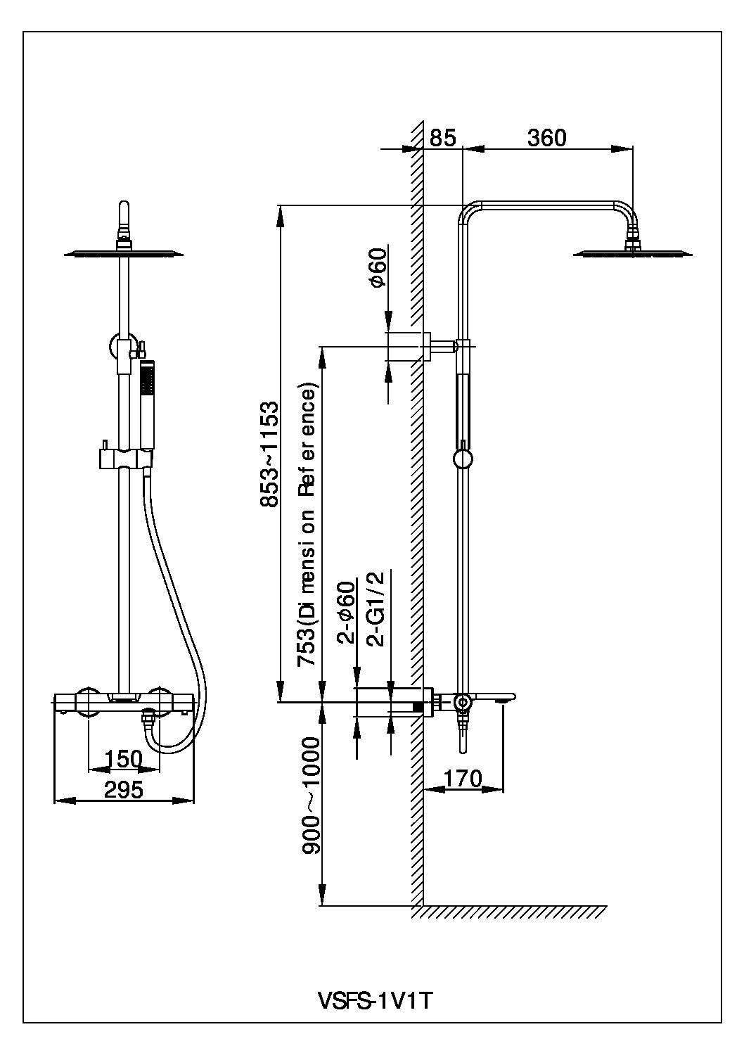 Душевая стойка с термостатом Vincea Vogue VSFS-1V1TMB черный матовый