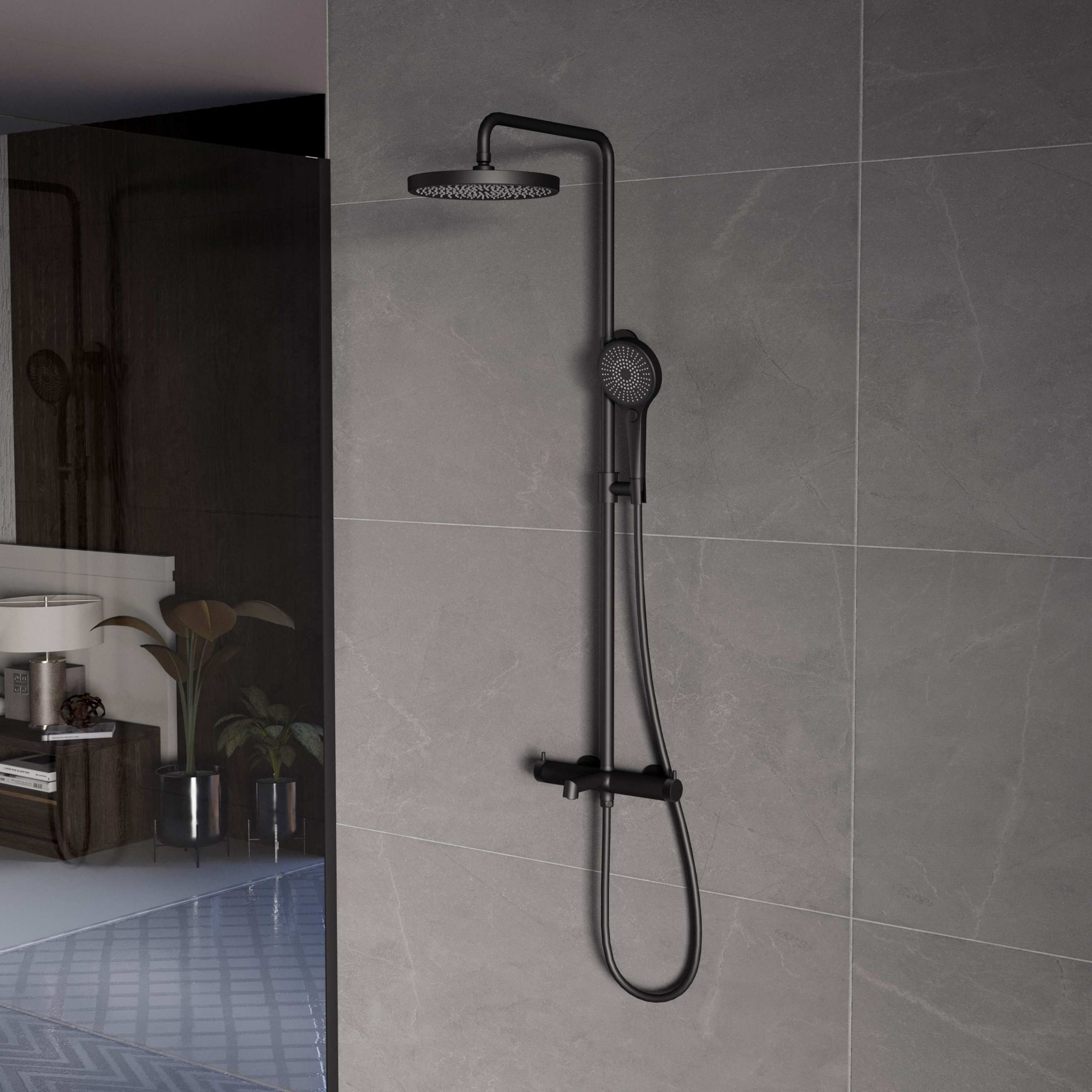 Душевая стойка со смесителем Vincea Rim VSFS-2RM1MB черный матовый