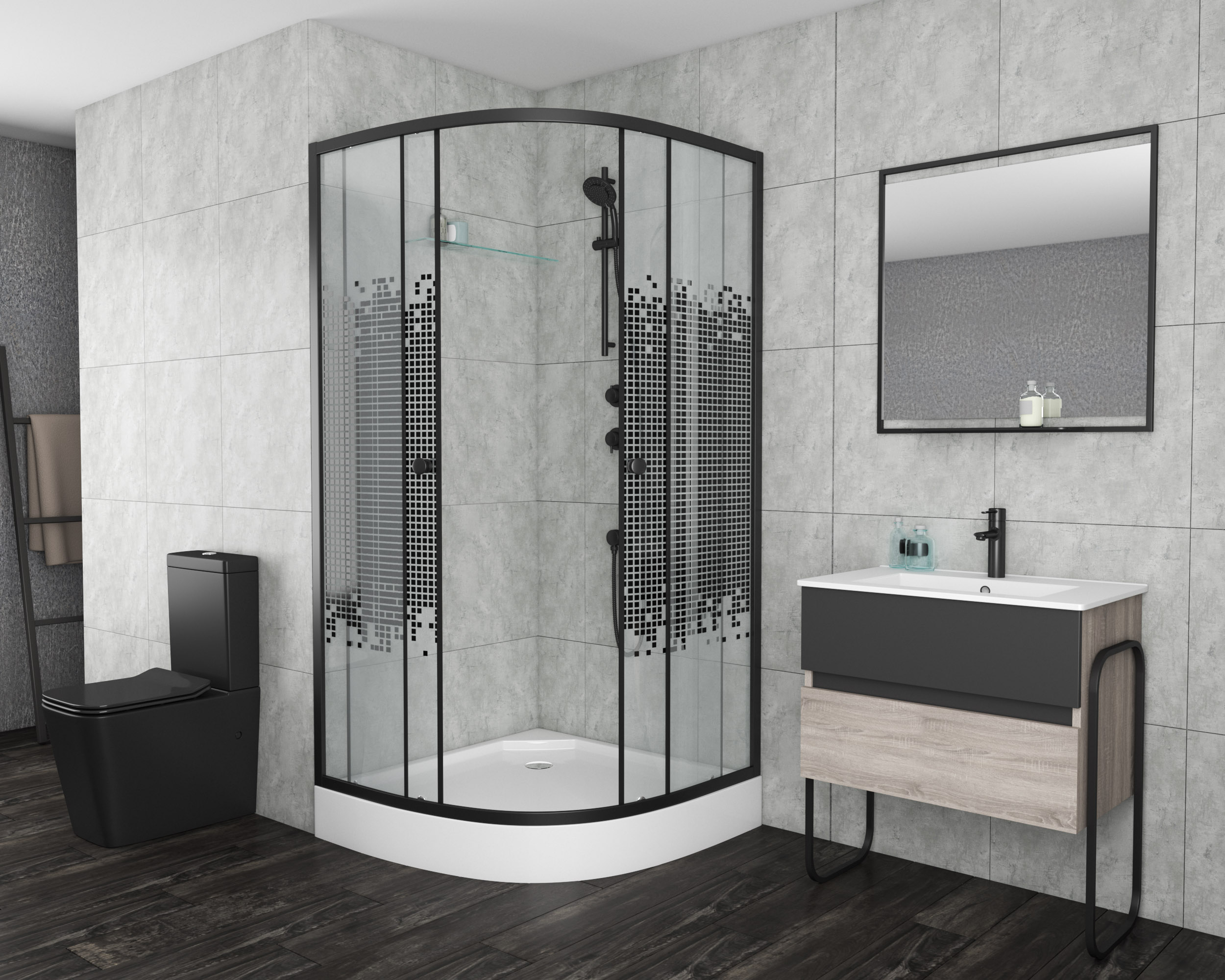 Оригинальный душевой угол Niagara NG- 003-14BLACK 80x80x195 профиль черный, стекло с узором - это идеальное сочетание изысканности и функциональности. Форма конструкции - четверть круга, Изготовлена модель в Китая из прочных и экологичных материалов и удачно дополнит любой интерьер ванной комнаты. Изделие категории обладает размерами: ширина 80 см, глубина 80 см, высота 195 см, что делает его вполне удобным в использовании. Профиль из алюминия гарантирует дополнительную прочность модели, препятствует появлению коррозии. Раздвижные двери предусмотрены спереди, открываются стандартно и имеют с узором покрытие. Уголок для душа коллекции Eco устанавливается на поддон, замечательно выполняет свои задачи и не требует больших усилий для поддержания порядка. Гарантийное обслуживание на изделие компании Niagara - 5 лет.