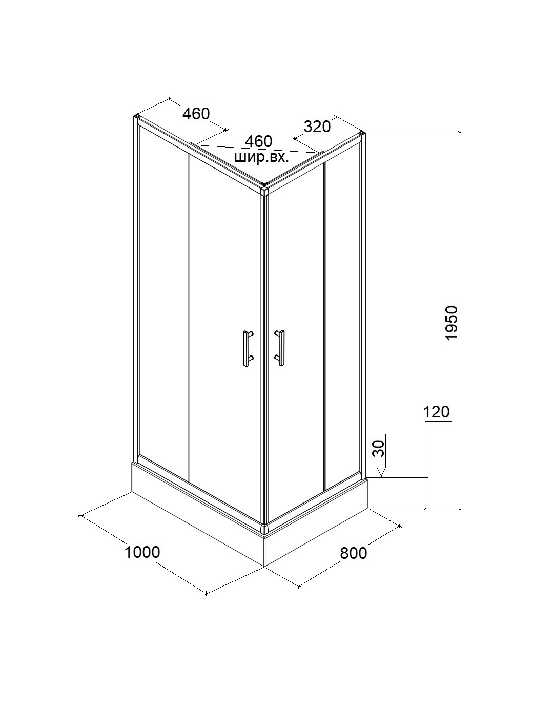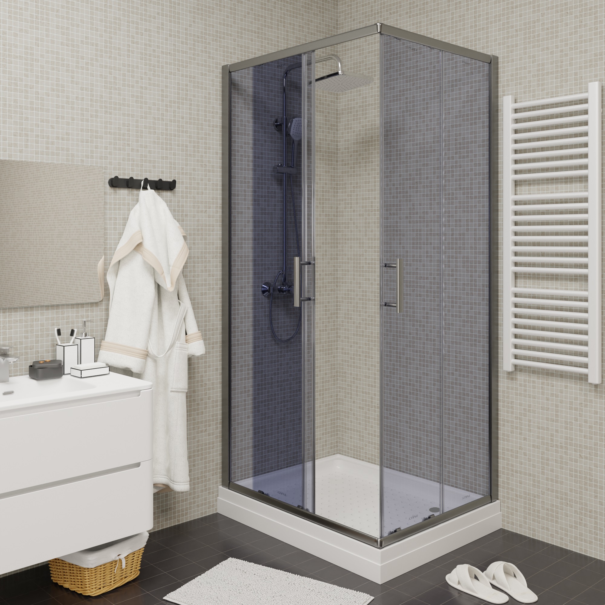 Душевой угол Parly 80x100x185 профиль хром, стекло тонированное