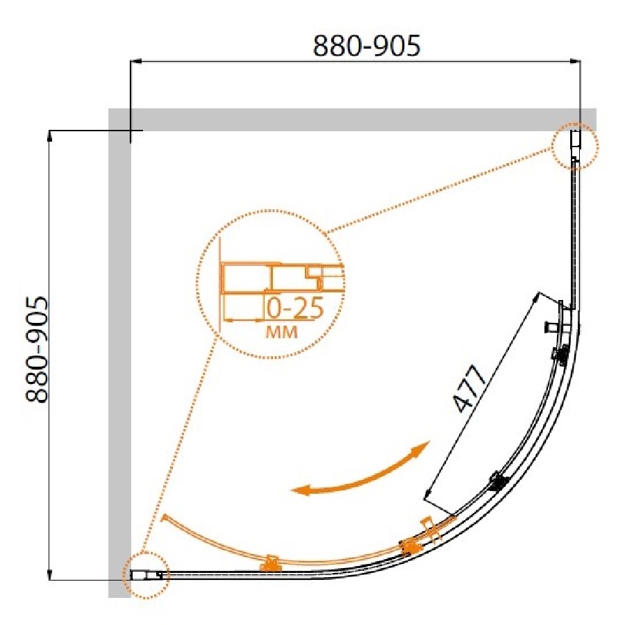 Душевой уголок Cezares Molveno R-1 90х90 профиль Хром стекло прозрачное