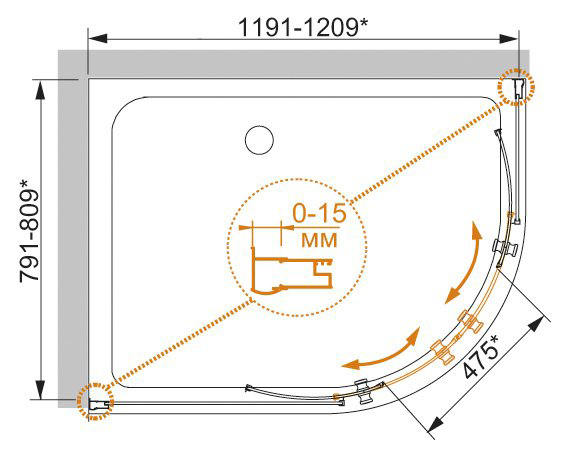 Душевой уголок Cezares Pratico RH2 120x80 Хром стекло прозрачное
