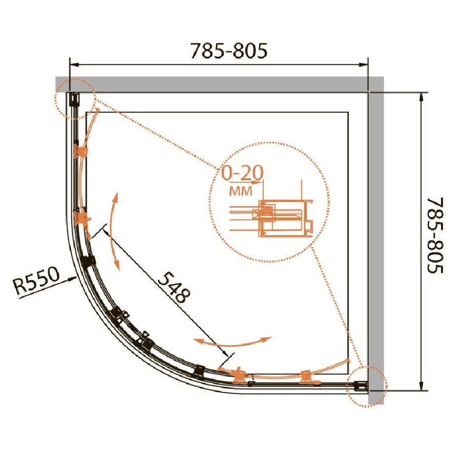 Душевой уголок Cezares Relax R-2 80х80 стекло прозрачное