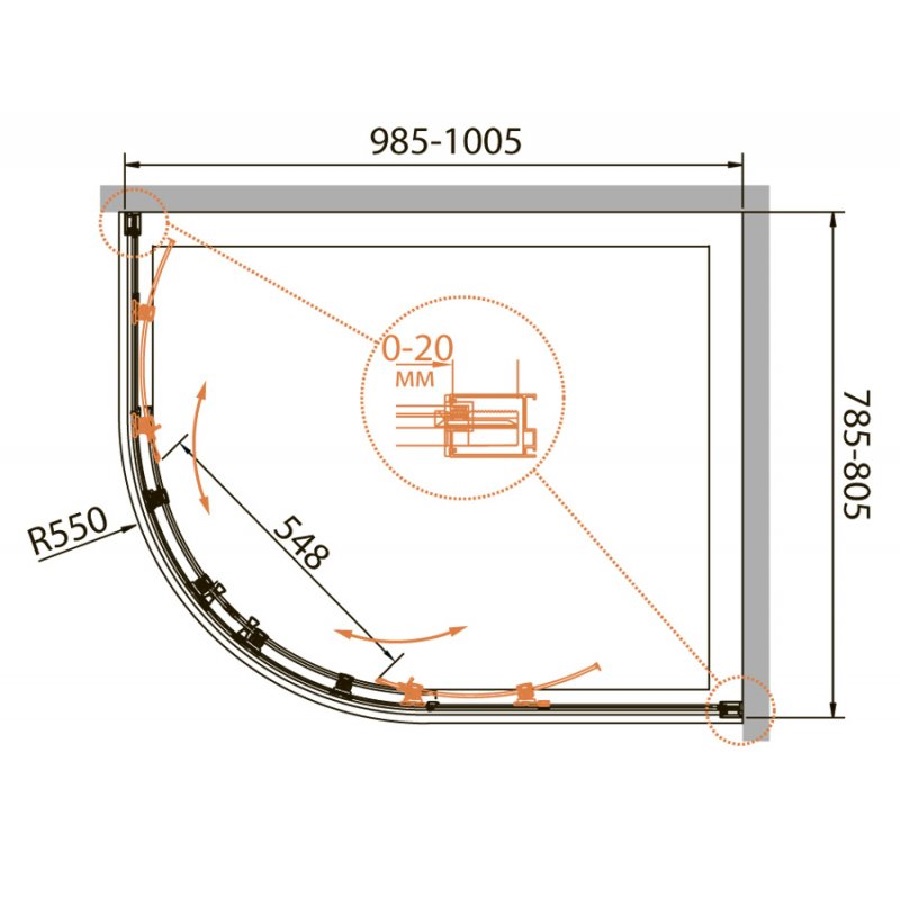 Душевой уголок Cezares Relax RH-2 100х80 стекло прозрачное