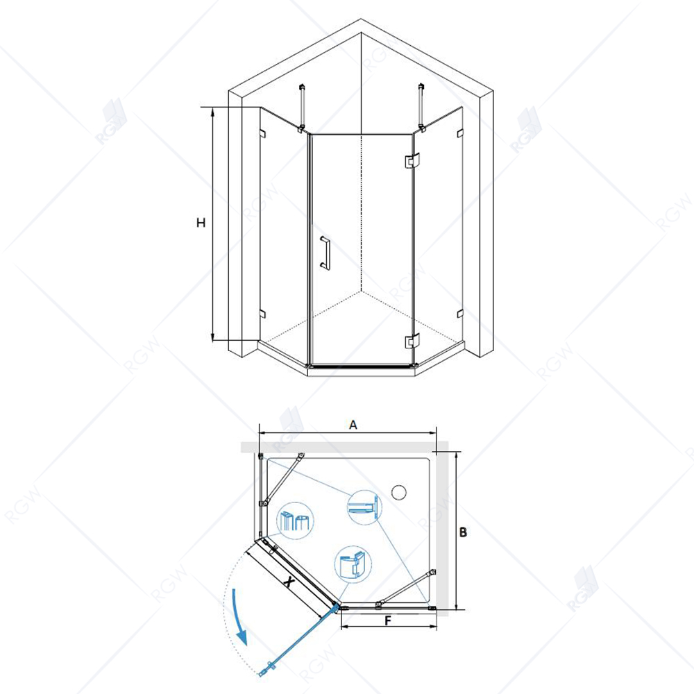 Современный душевой угол RGW Hotel 90x90x195 профиль хром, стекло прозрачное - это превосходное сочетание изысканности и функциональности. Форма конструкции - пятиугольная, Сделана модель в Германии из качественных материалов и гармонично дополнит каждый интерьер помещения. Изделие ценового сегмента премиум обладает размерами: ширина 90 см, глубина 90 см, высота 195 см, что делает его весьма эргономичным. Профиль из алюминия гарантирует особую прочность модели, препятстует появлению ржавчины и скоплению загрязнений. Распашные двери предусмотрены спереди, открываются стандартно наружу и имеют прозрачное покрытие. Уголок для душа коллекции Leipzig устанавливается на поддон, превосходно выполняет свои функции и не требует значительных усилий для поддержания порядка. Гарантия на изделие компании RGW - 1 год.