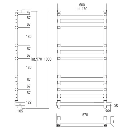 Полотенцесушитель электрический Margaroli Sole 564-11 5644711CRNB 1016х570 хром
