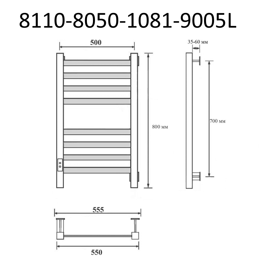 Полотенцесушитель электрический Маргроид Вид 81-10 профильный 80х50 черный матовый