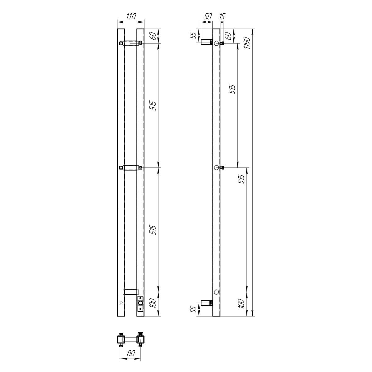 Полотенцесушитель электрический Point Гермес PN13812GB П3 80x1200 диммер справа, графит блеск