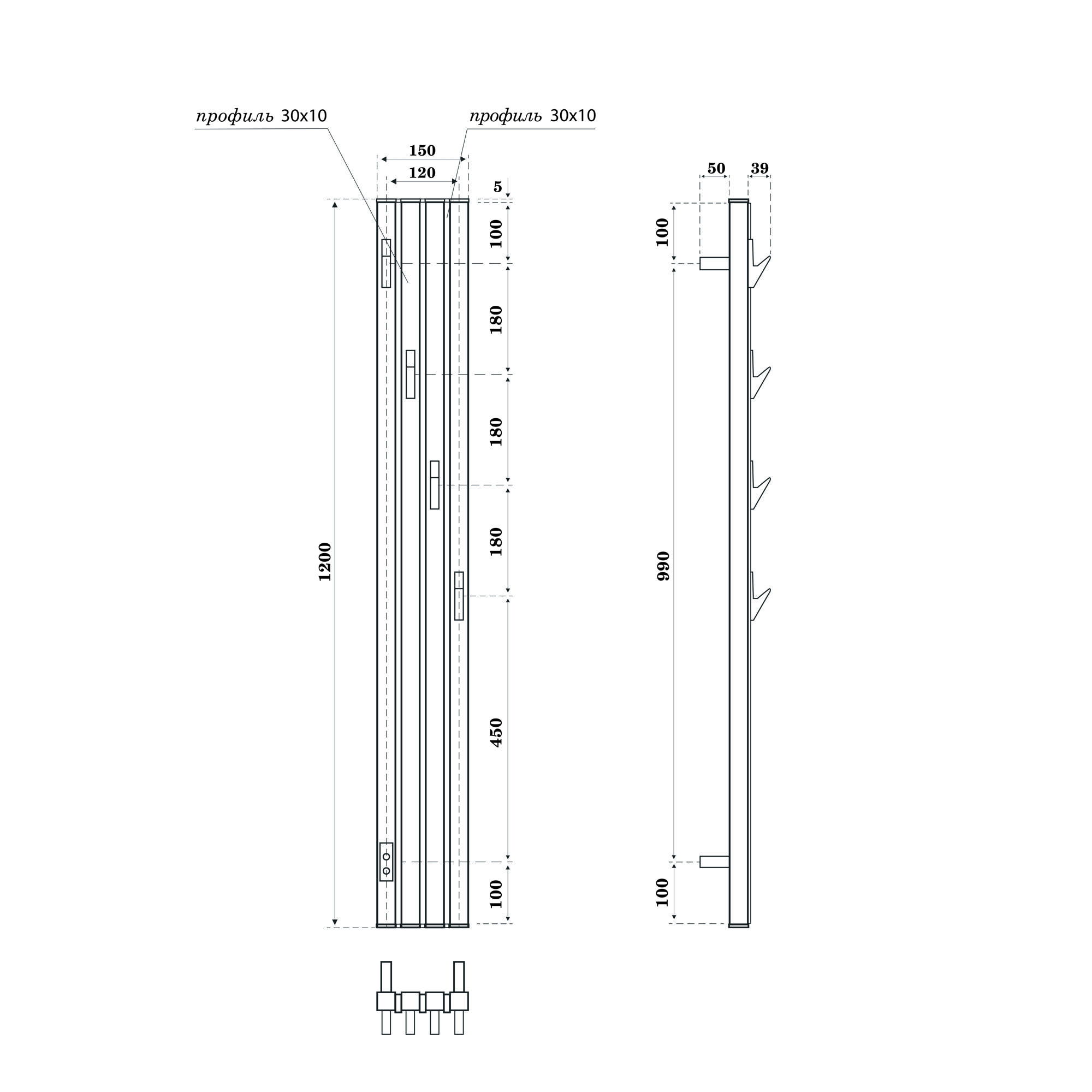 Полотенцесушитель электрический Point Пиано PN19722WC 150x1200 диммер слева, белый/хром