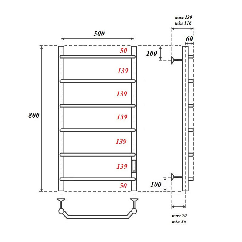 Полотенцесушитель электрический Point PN06858 П6 500x800 диммер справа, хром