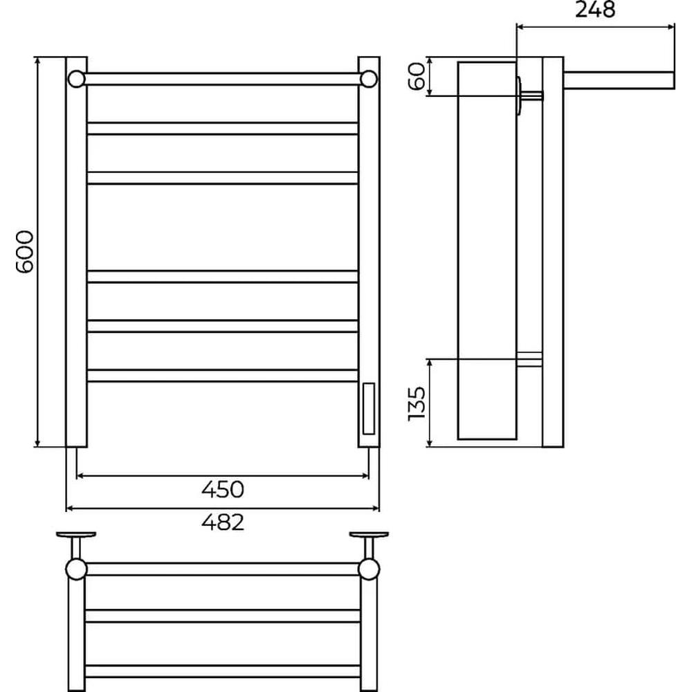 Полотенцесушитель электрический с полкой Terminus Аврора П6 450х60 КС, черный муар