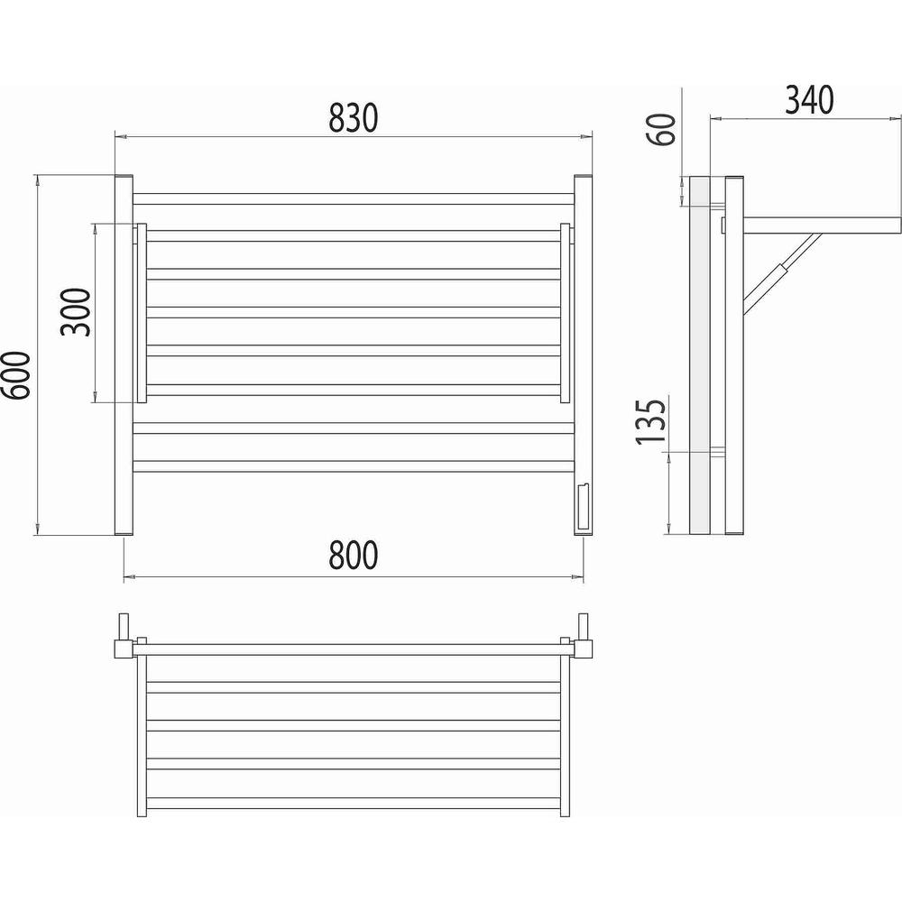 Полотенцесушитель электрический с полкой Terminus Горизонт П8 80х60 КС, черный муар