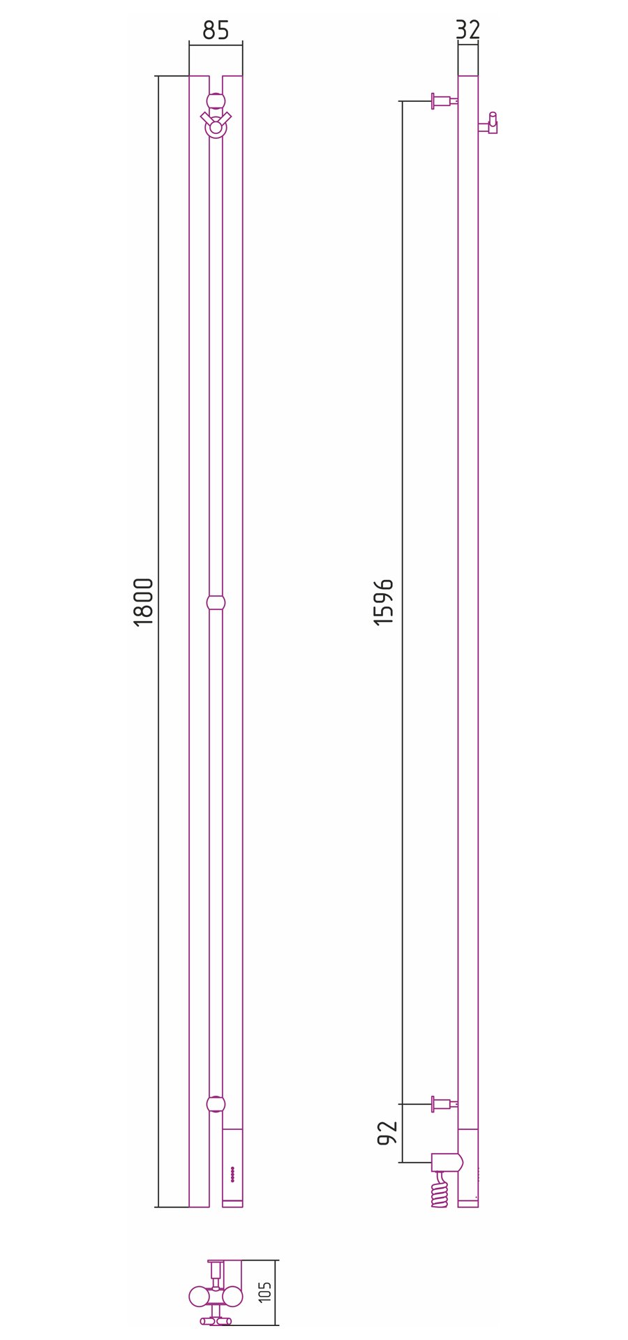 Полотенцесушитель электрический Сунержа Нюанс 3.0 180см 05-5843-1853 состаренная бронза