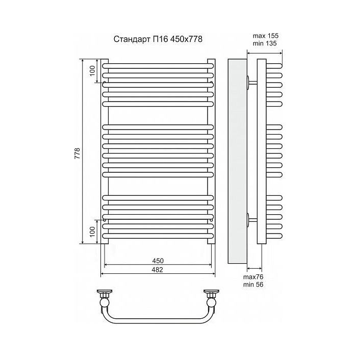 Полотенцесушитель электрический Terminus Стандарт П16 450x778, ТЭН HT-1 300W, левый/правый