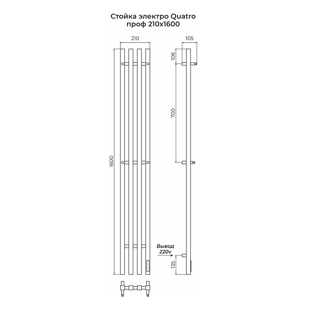 Полотенцесушитель электрический Terminus Стойка QUATRO проф 160, черный
