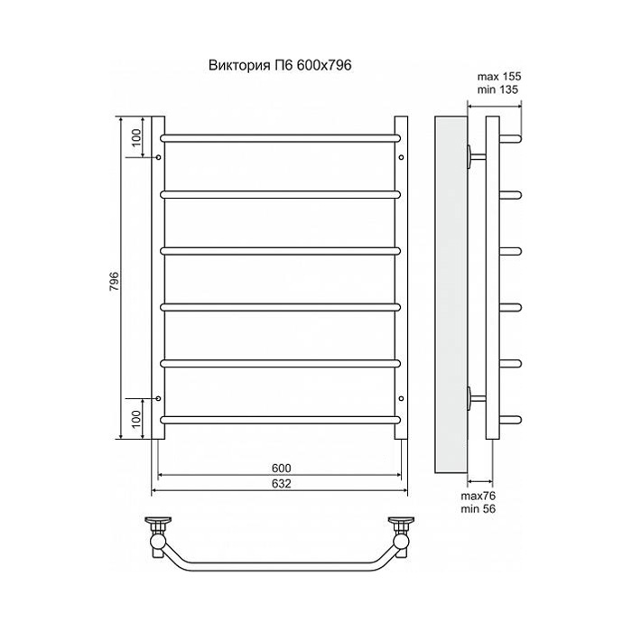 Полотенцесушитель электрический Terminus Виктория П6 600x796, ТЭН HT-1 300W, левый/правый
