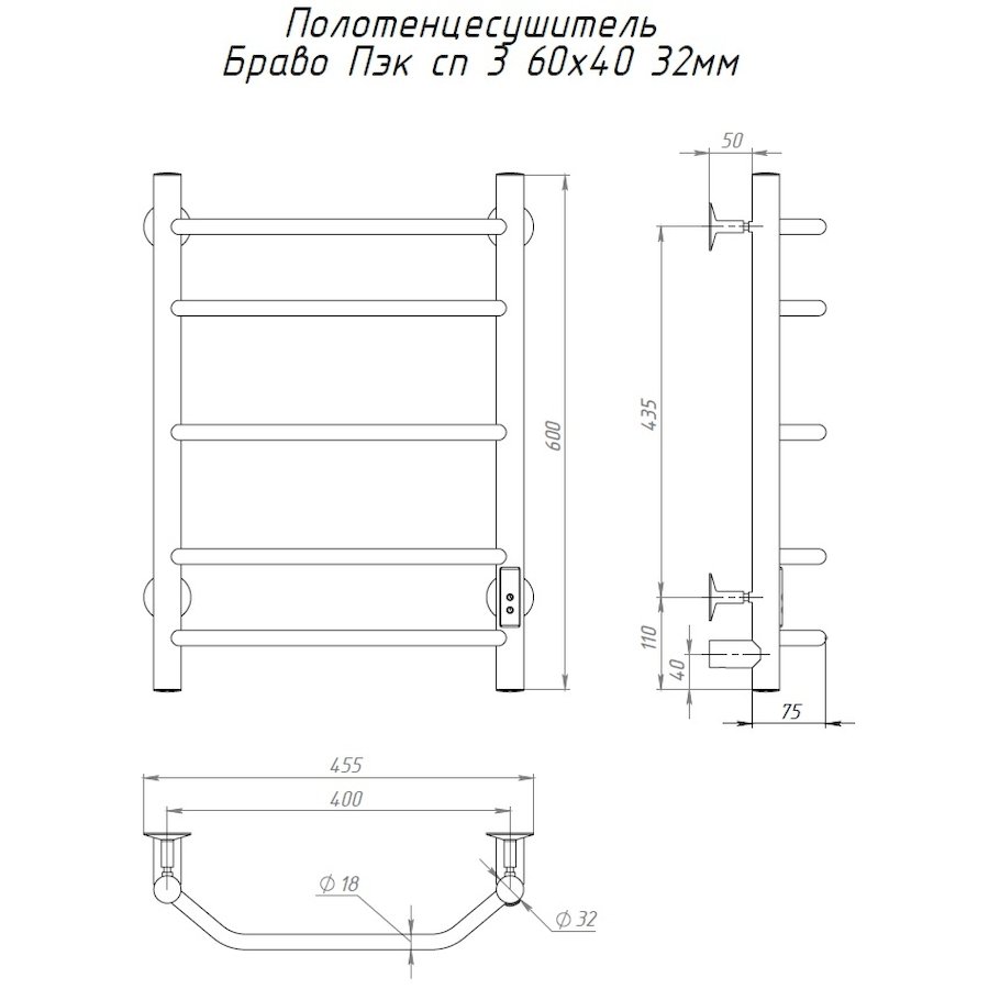 Полотенцесушитель электрический Тругор Браво Пэк сп серия 3 60х40 хром