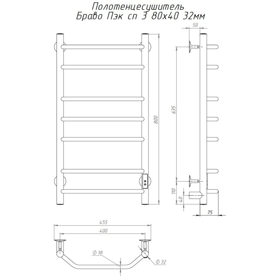 Полотенцесушитель электрический Тругор Браво Пэк сп серия 3 80х40 хром