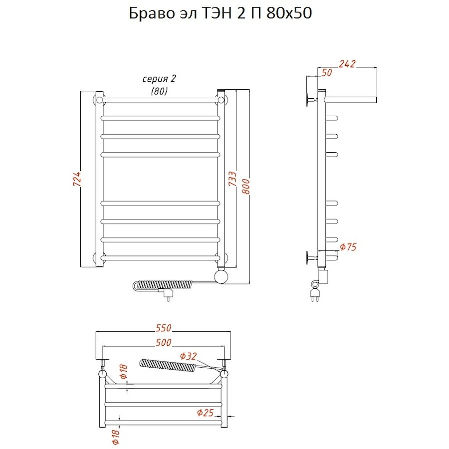 Полотенцесушитель электрический Тругор Браво серия 2 80х55 хром