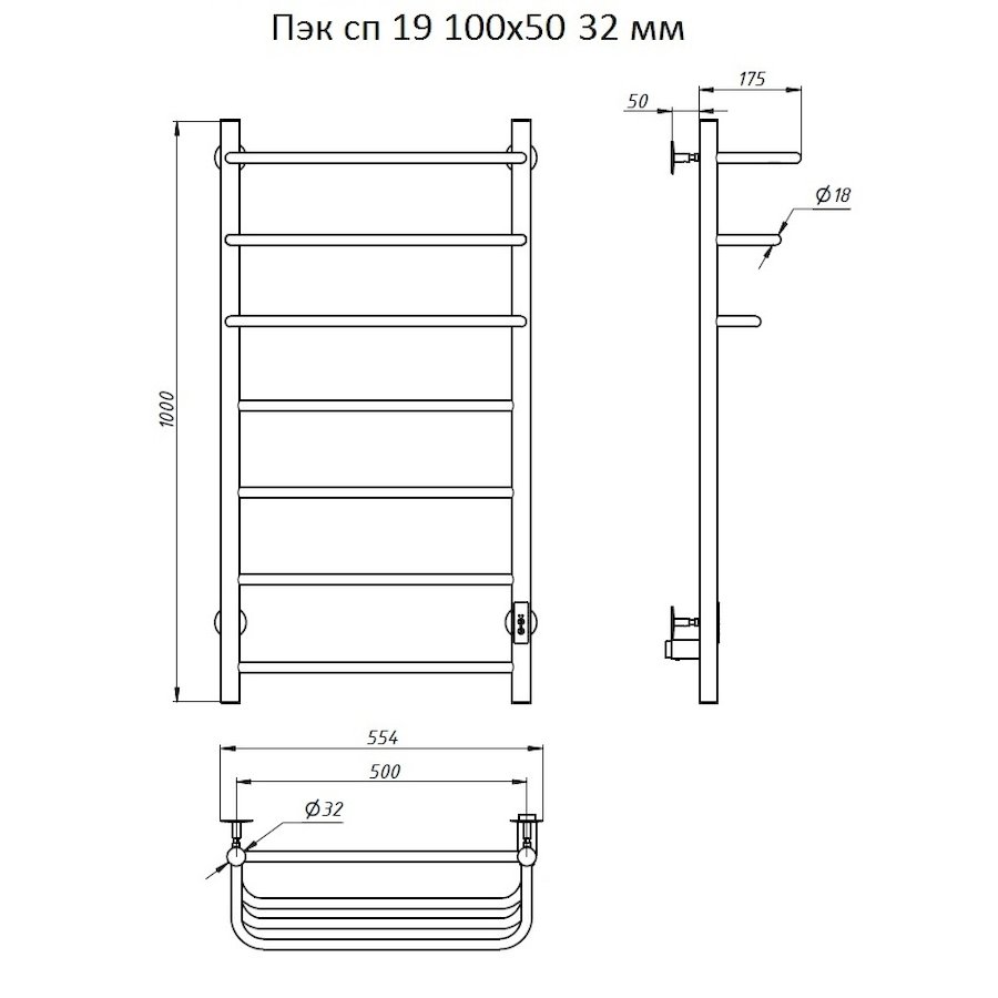 Полотенцесушитель электрический Тругор Пэк серия 19 100х50 хром