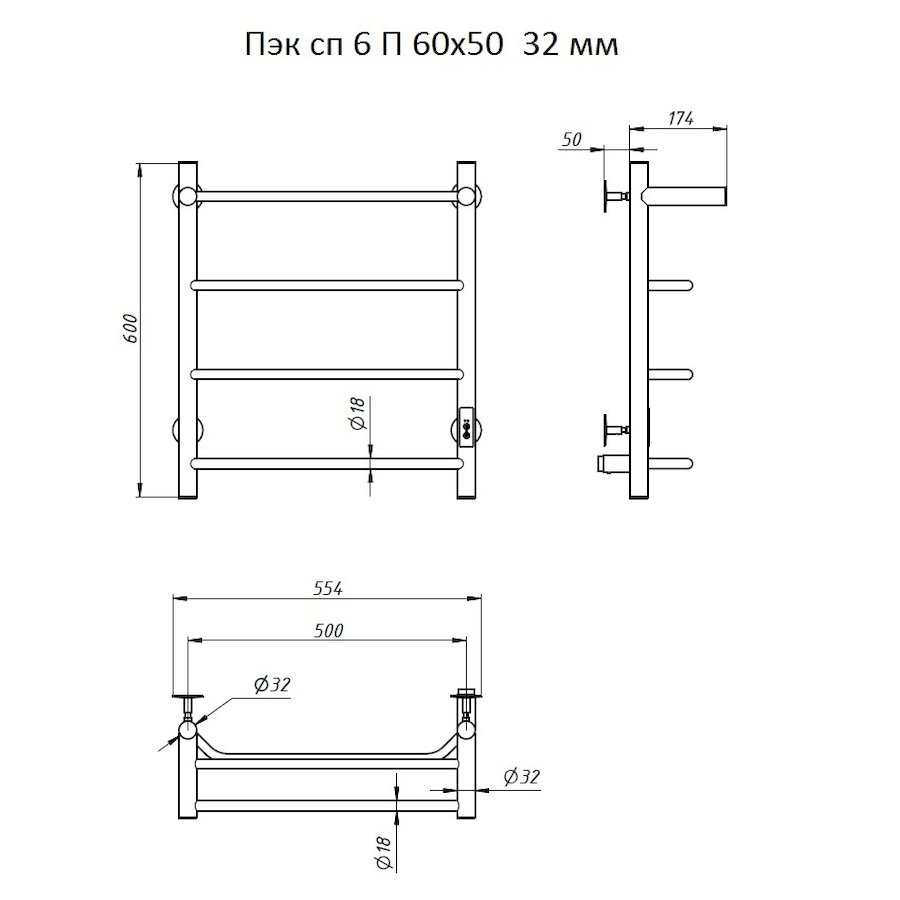 Полотенцесушитель электрический Тругор Пэк серия 6 60х50 хром, с полкой