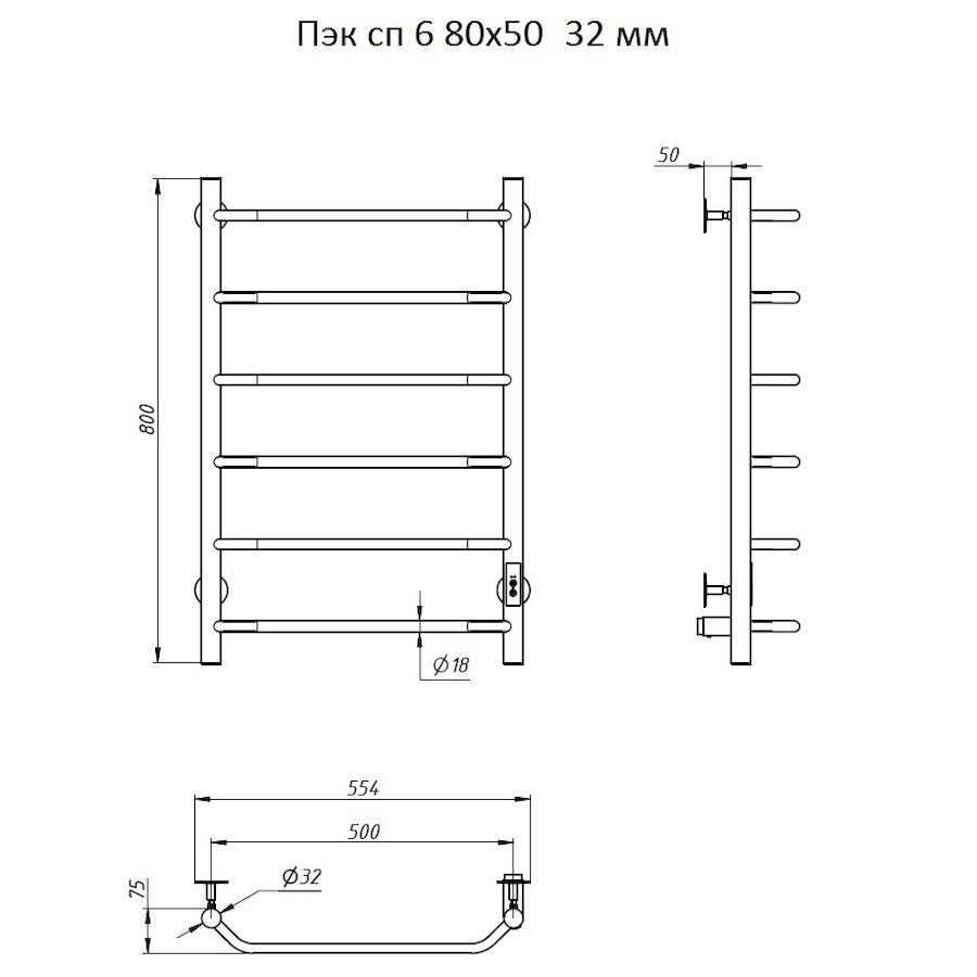 Полотенцесушитель электрический Тругор Пэк серия 6 80х50 хром