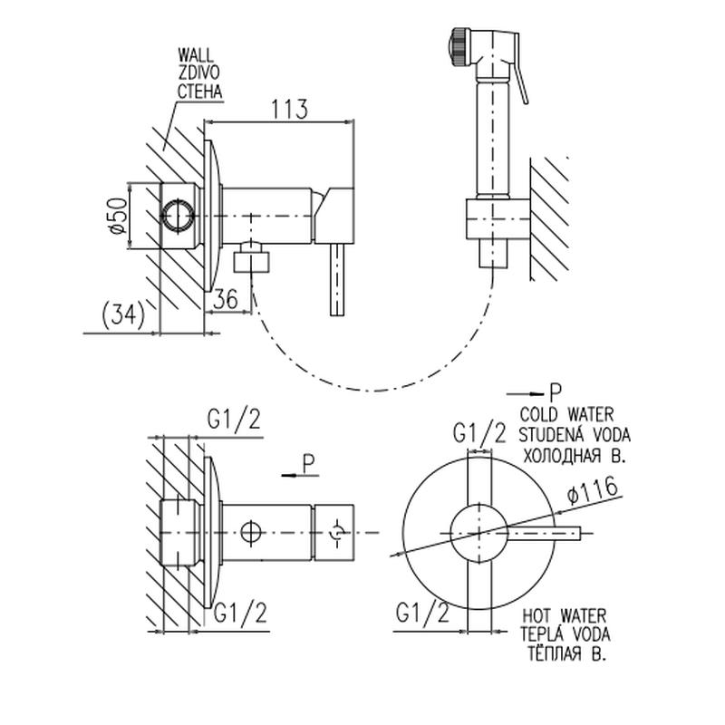 Гигиенический душ со смесителем Rav Slezak Seina SE947/1, хром