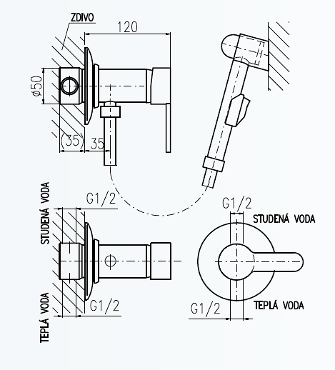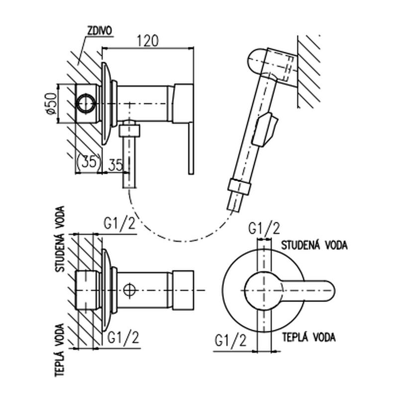 Гигиенический душ со смесителем Rav Slezak Zambezi ZA047, хром
