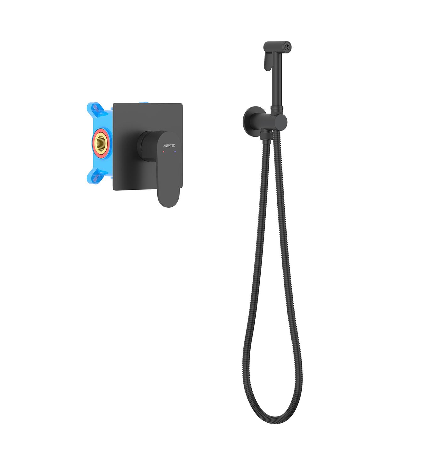 Гигиенический душ со смесителем Aquatek Оберон AQ1219MB черный матовый