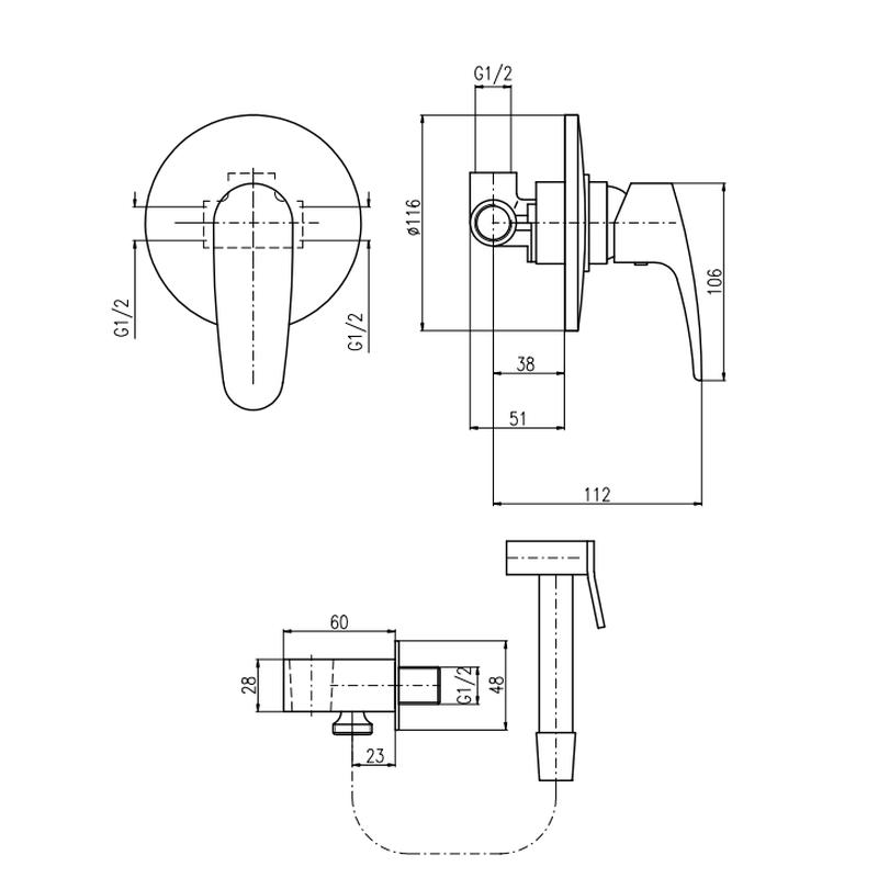 Гигиенический душ со смесителем Rav Slezak Amur AM742/1, хром
