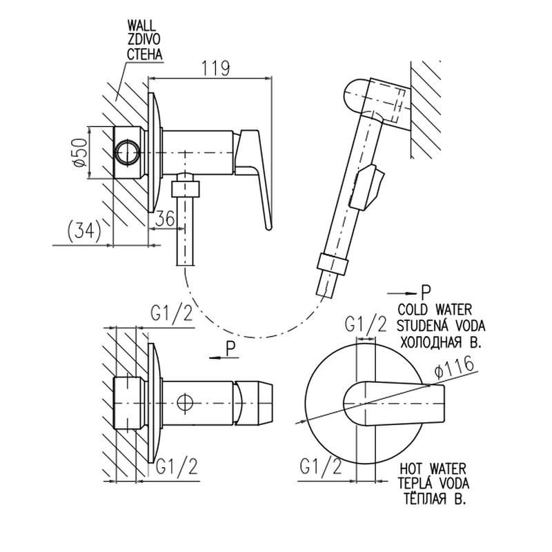Гигиенический душ со смесителем Rav Slezak COLORADO CO247, хром