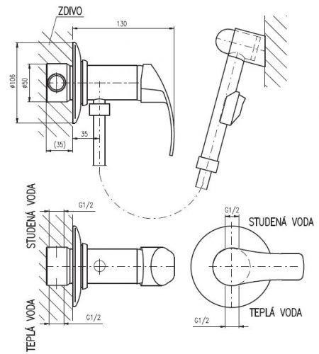 Гигиенический душ со смесителем Rav Slezak Mississippi MS047, хром