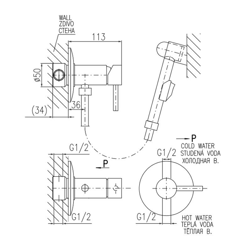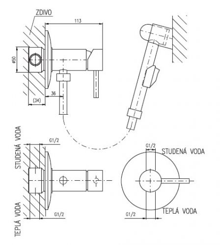 Гигиенический душ со смесителем Rav Slezak Seina SE947, хром