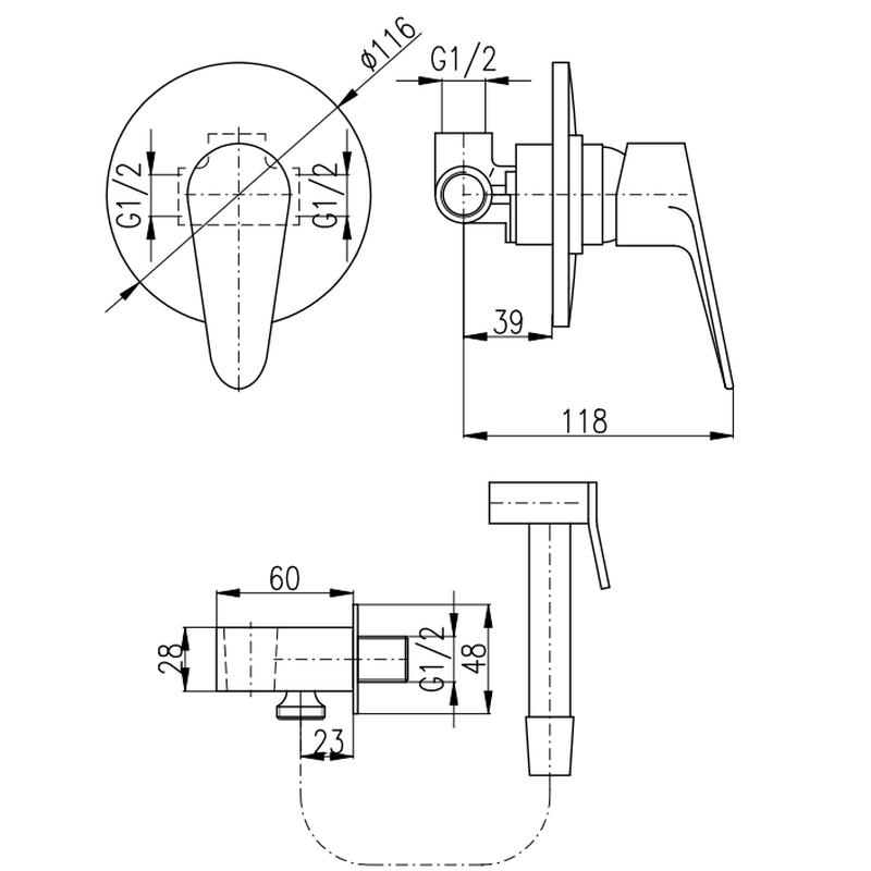 Гигиенический душ со смесителем Rav Slezak VICTORIA VI242, хром
