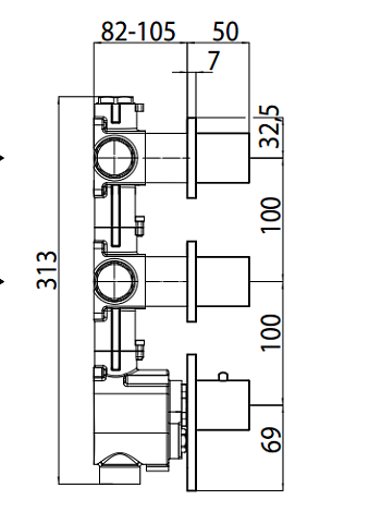 Скрытая часть для термостата HighFlow на 3 потребителя (установка вертикально/горизонтально) Bossini Outlets Z030203000