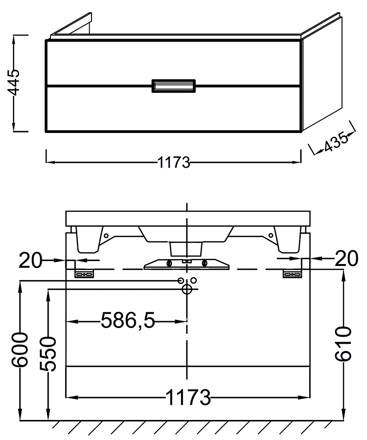 Тумба для комплекта Jacob Delafon Reve 120 белая, 2 ящика