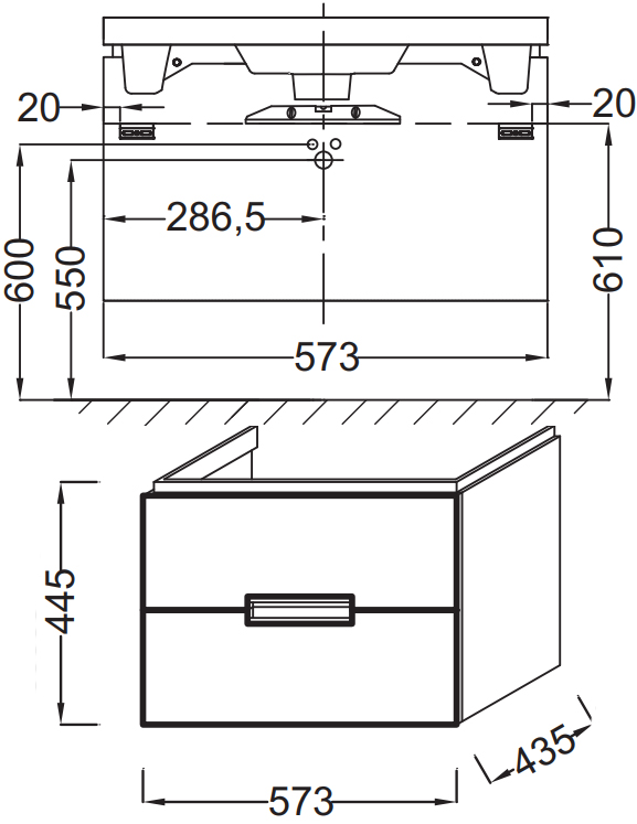 Тумба для комплекта Jacob Delafon Reve 60 белая, 2 ящика