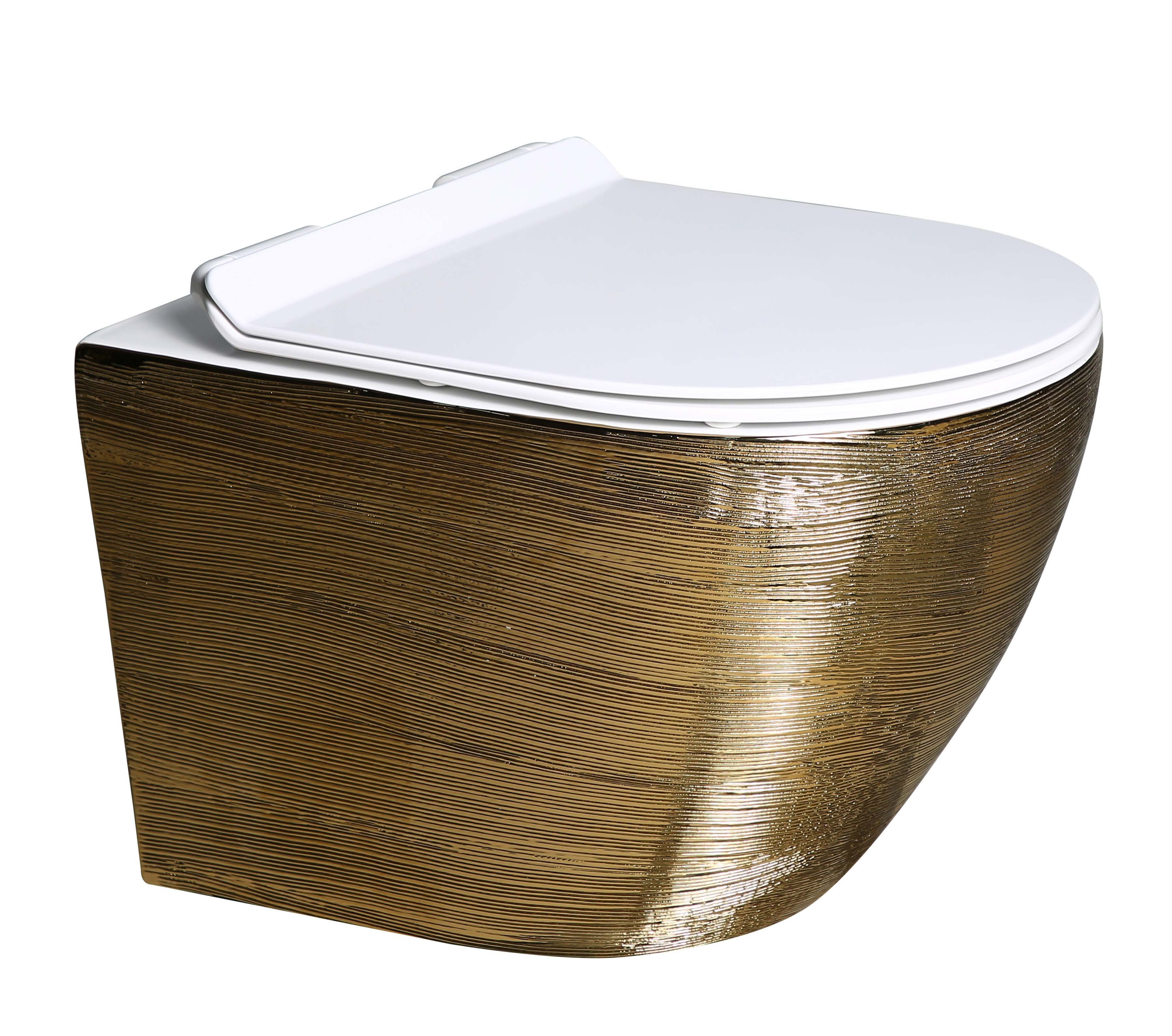 Унитаз подвесной Esbano TERUEL белый/золото, с сиденьем микролифт