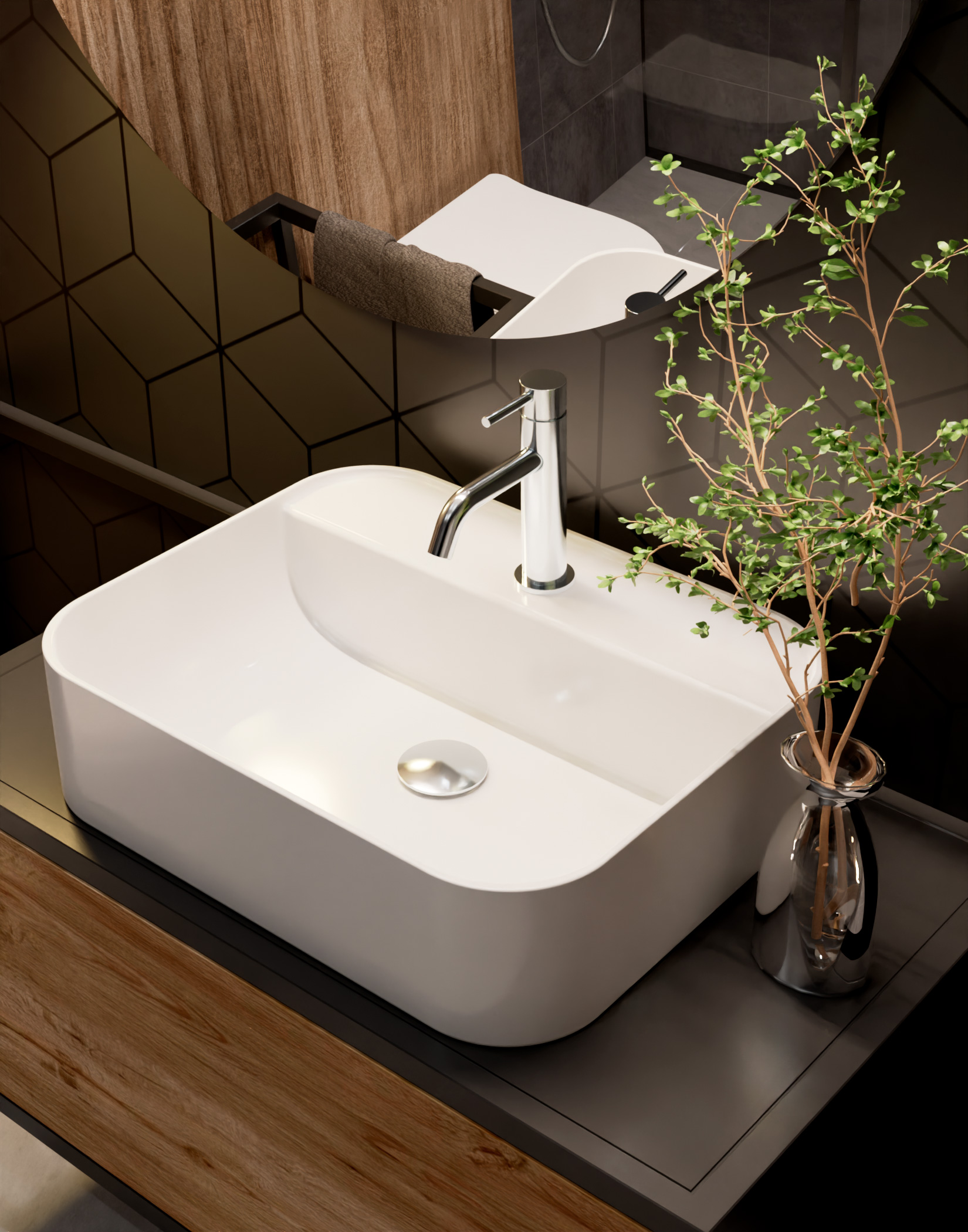 Раковины-чаши сейчас высоко ценятся и позволяют максимально выгодно использовать площадь ванной комнаты. Раковина накладная 50.5см AQUAme AQM5001 белый является популярной моделью в этом классе и предоставляет возможность не только легко сделать все гигиенические моменты, но и делает интерьер помещения более гармоничным. Функциональности этому умывальнику прибавляет прямоугольная форма и продуманное решение выполнения чаши на 1 отверстие под кран. Материал производства - фаянс, ценится за свою прочность, не требует серьезных усилий для очистки и замечательно сохраняет весь цветовой спектр. Чаша монтируется просто - к столешнице и отлично гармонирует с различными товарами бренда AQUAme, а гарантия на нее действует 10 лет. Изделие, как и все представители серии , произведено в изысканном ключе. Утонченные изгибы, округлые формы, правильные пропорции - все это делает данную модель прекрасным вариантом для любителей комфорта и красоты. Умывальник производится в Италии и сделан в размерах: высота 13.5 см, ширина 50.5 см., глубина 40 см., что совершенно точно можно считать дополнительным плюсом для тех, кто настроен разумно использовать каждый дюйм при планировке своего помещения.